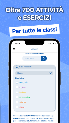 Nell’app sono presenti oltre 700 attività interattive per ogni pacchetto: tanti test a risposta multipla, operazioni drag and drop ed esercizi di riempimento testo, ripassare non è mai stato così divertente!